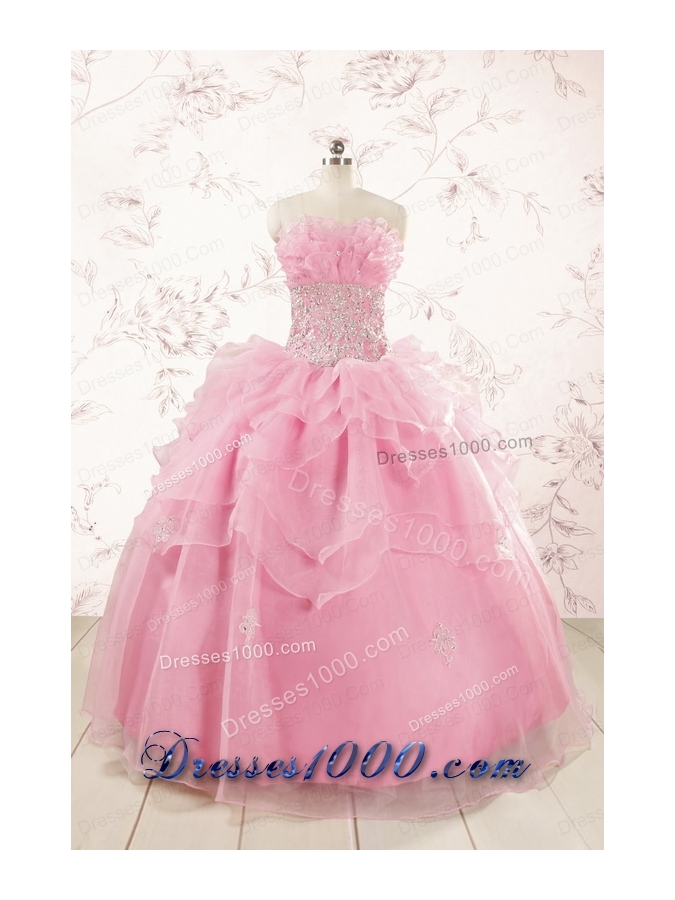 2015 Pretty Appliques Baby Pink Quinceanera Dresses