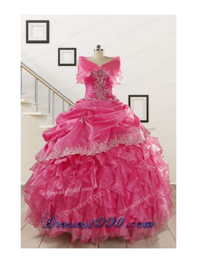 2015 Elegant Appliques and Ruffles Quinceanera Gowns in Hot Pink