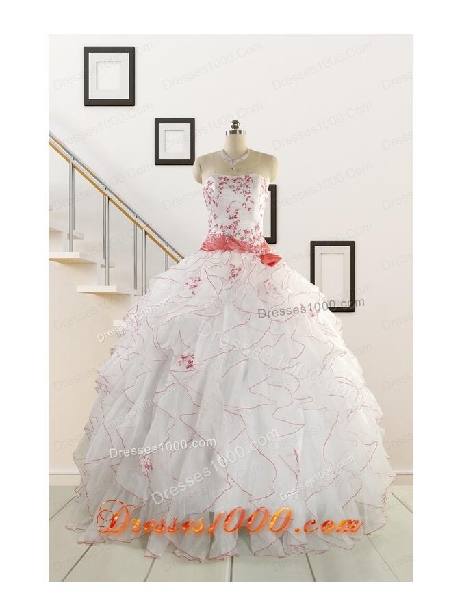 2015 Elegant Sweetheart Quinceanera Dresses with Appliques and Belt