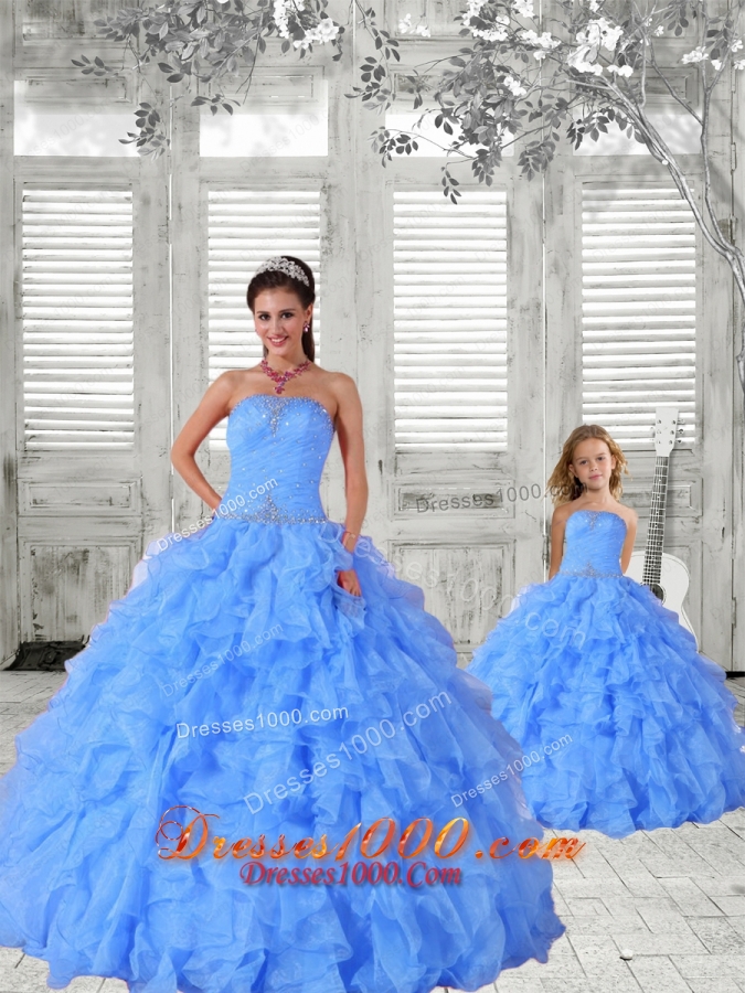 Affordable Beading and Ruching Baby Blue Princesita Dress