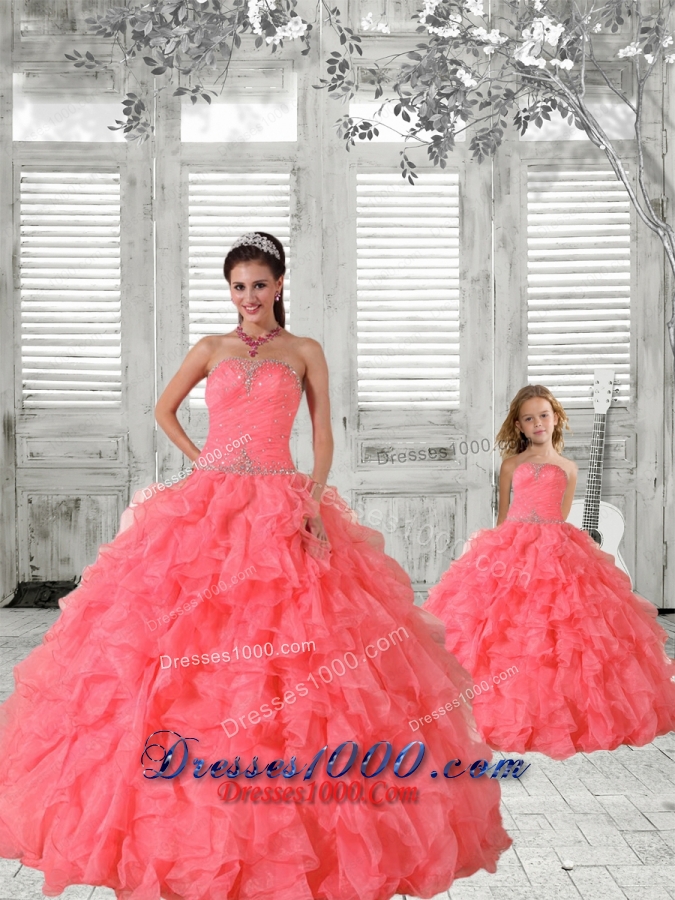 Most Popular Coral Red Princesita Dress with Beading and Ruching for 2015