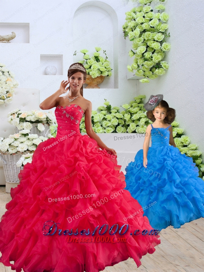 New Style Organza Coral Red Princesita Dress with Beading and Ruffles for 2015
