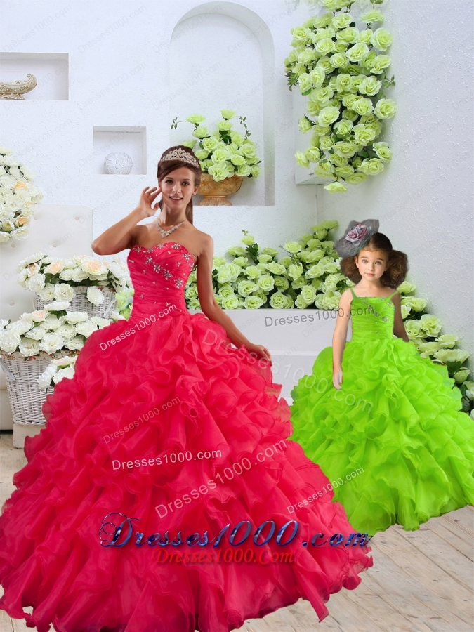 New Style Organza Coral Red Princesita Dress with Beading and Ruffles for 2015