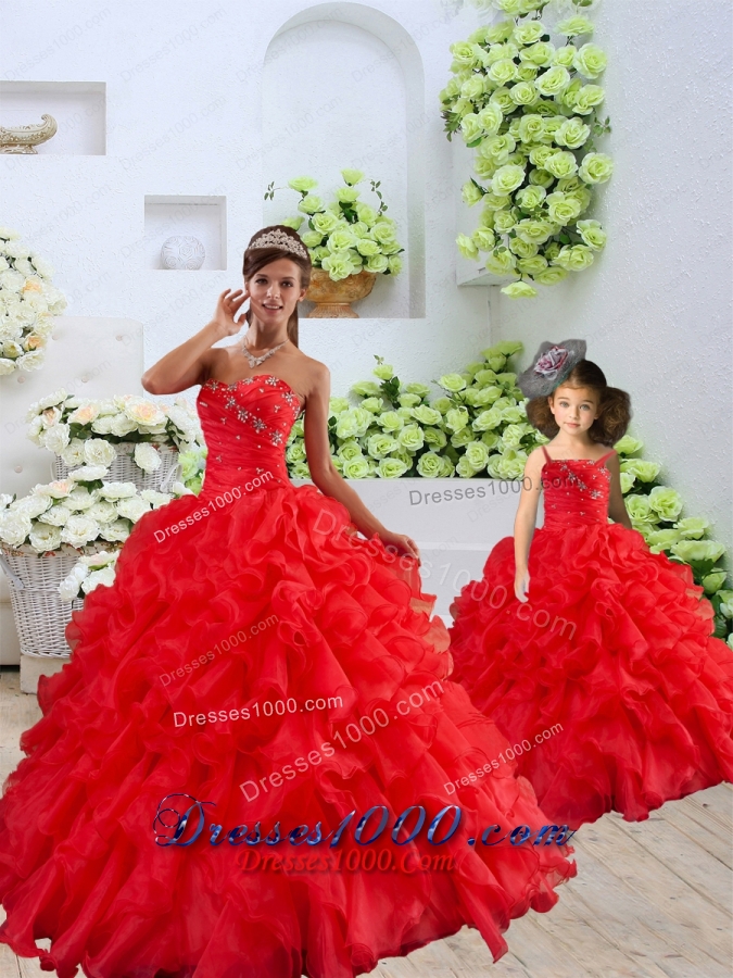 New Arrival Organza Coral Red Princesita Dress with Beading and Ruffles for 2015