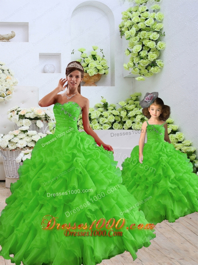 New Style Beading and Ruffles Princesita Dress in Spring Green for 2015
