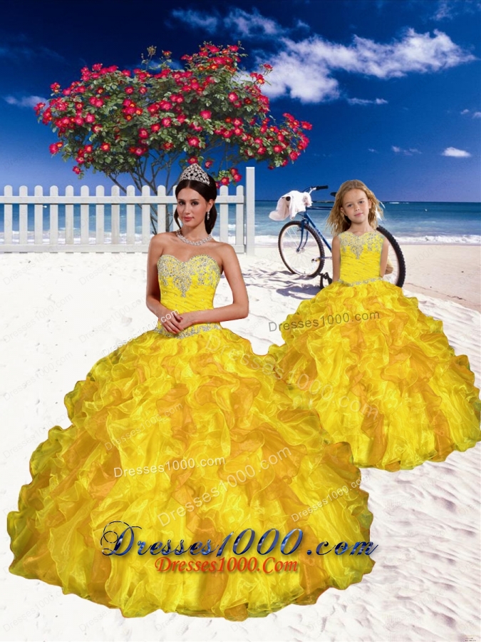 2015 Most Popular Appliques and Beading Yellow Princesita Dress