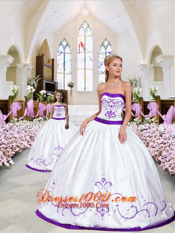 2015 New Style Embroidery White and Eggplant Purple Princesita Dress