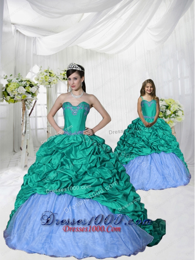 2015 Fashionable Appliques Brush Train Princesita Dress in Turquoise