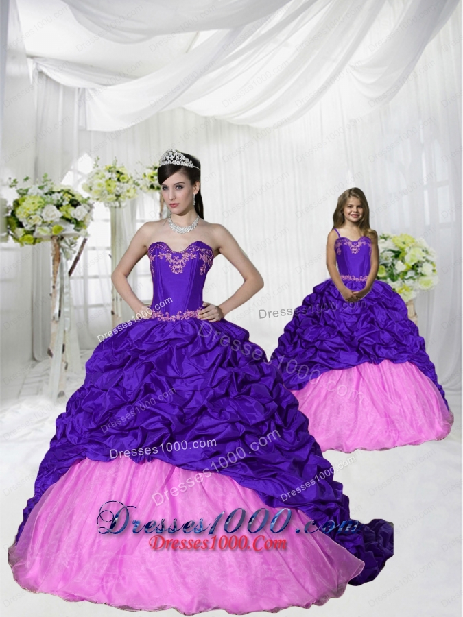 2015 New Arrival Appliques and Pick-ups Brush Train Purple Princesita Dress
