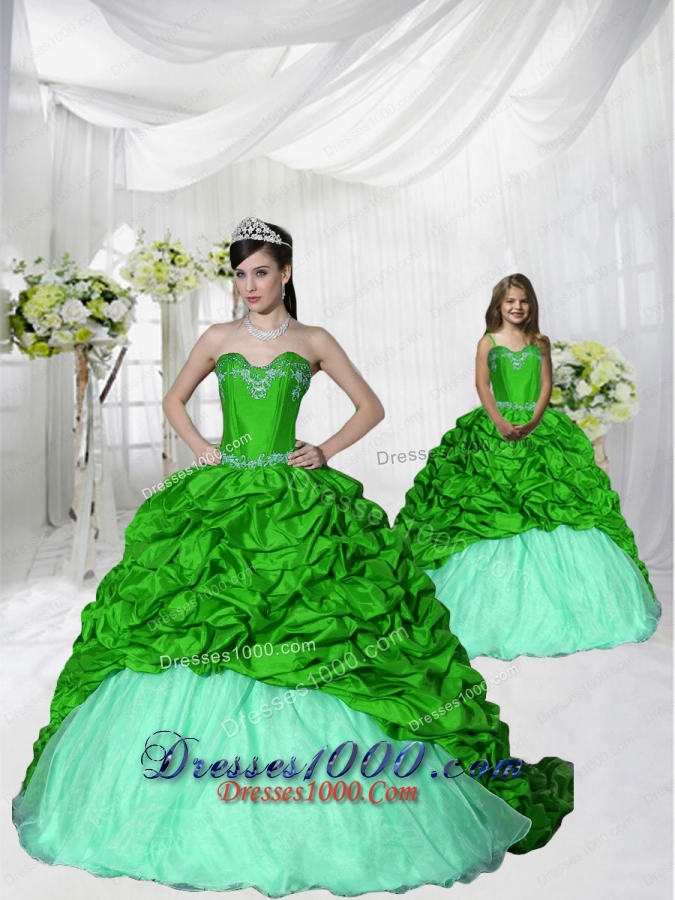 Trendy Appliques Brush Train Spring Green Princesita Dress for 2015 Spring