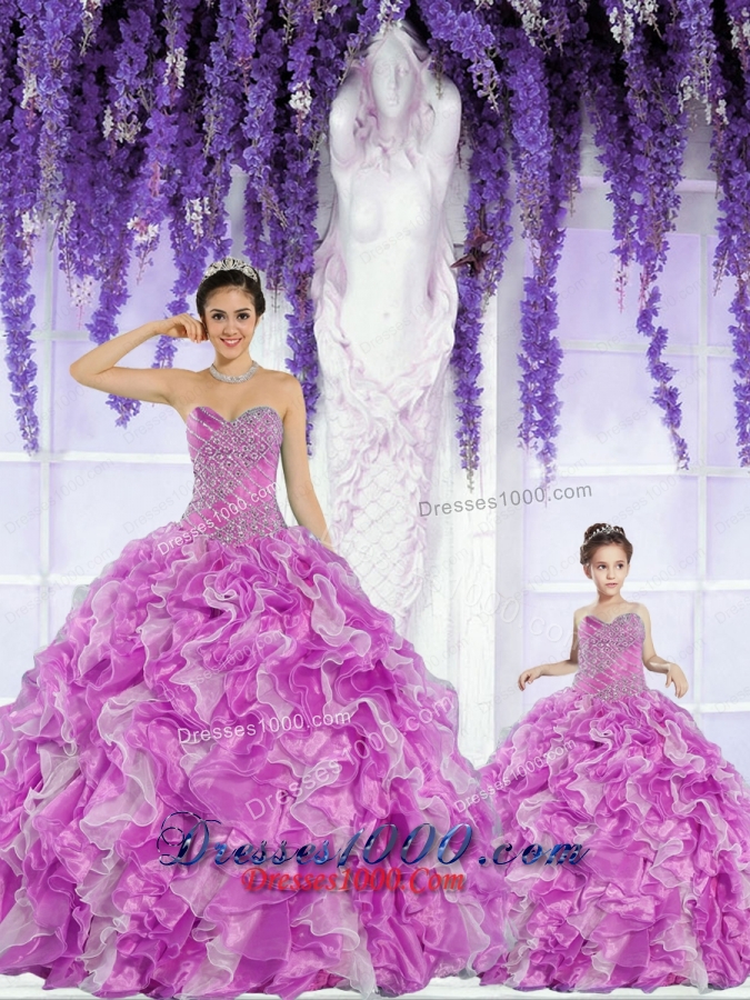 2015 Fashionable Organza Beading and Ruffles Princesita Dress in Fuchsia