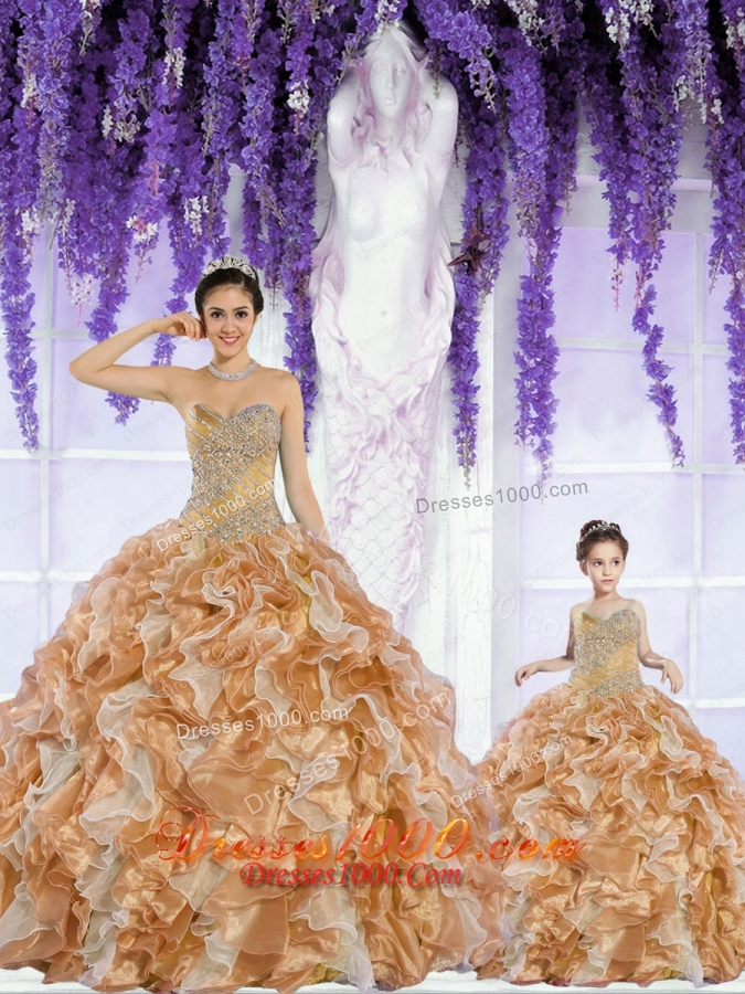 Most Popular Organza Beading and Ruffles Princesita Dress in Champagne