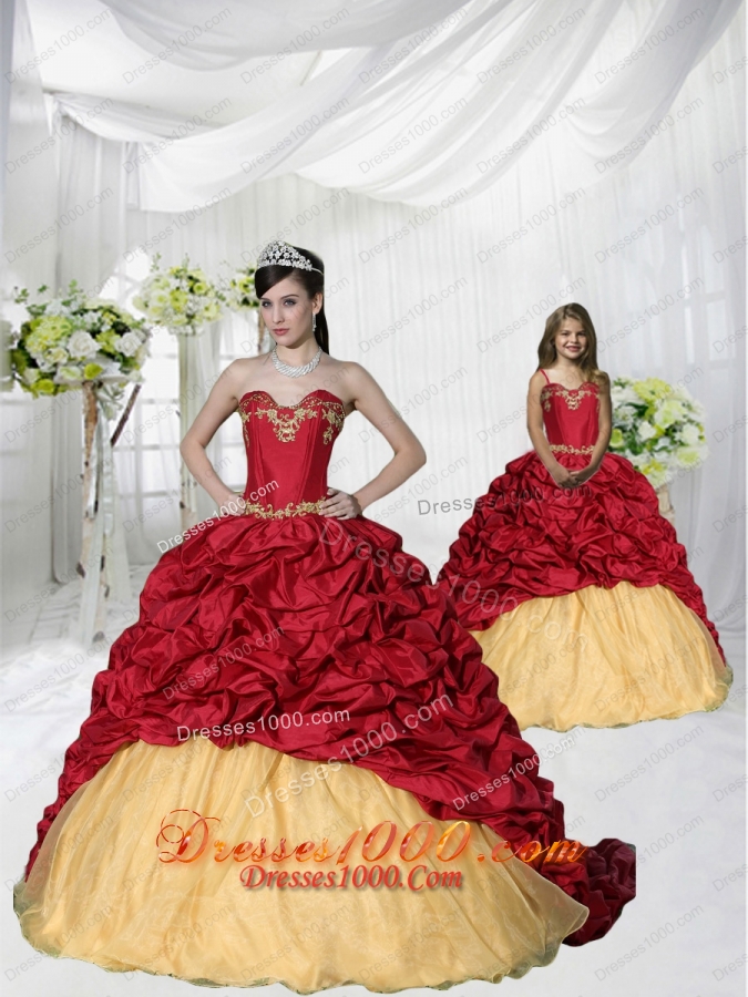 Appliques and Pick-ups Brush Train Princesita Dress in Wine Red