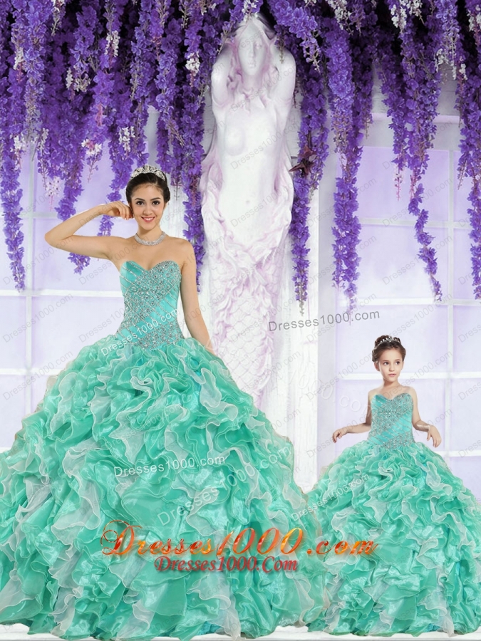 Apple Green Sweetheart Organza Beading and Ruffles Princesita Dress