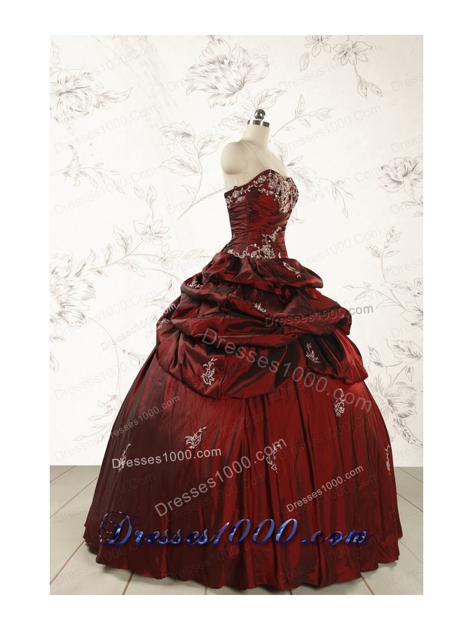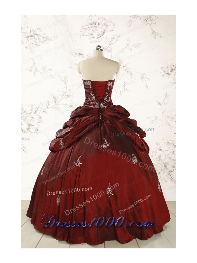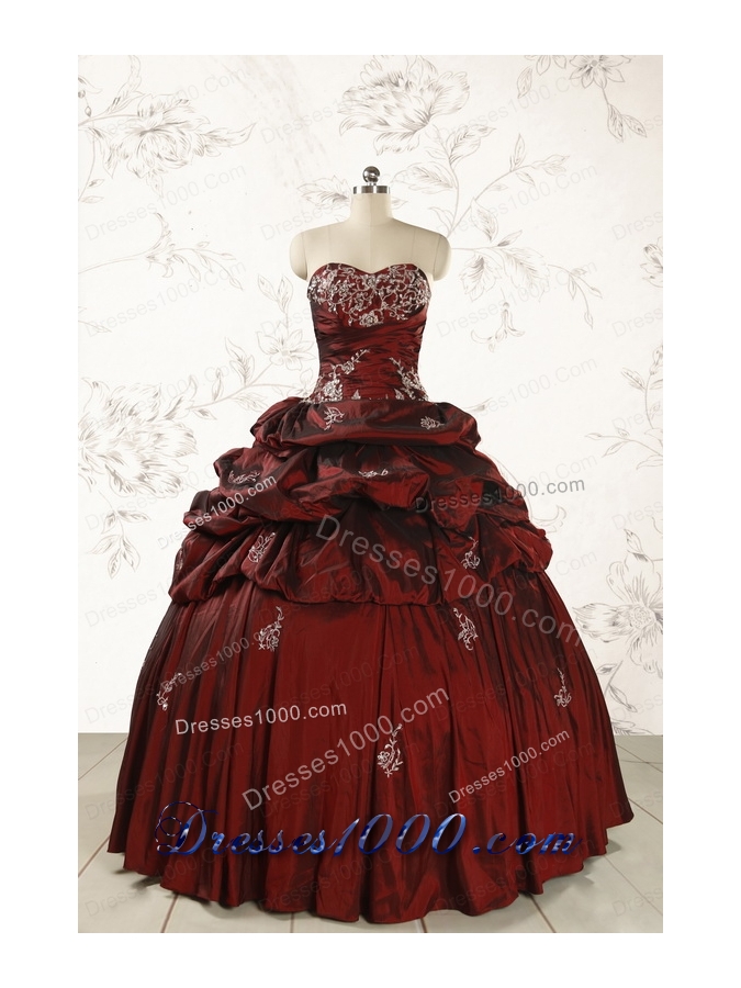 2015 Cheap Appliques Wine Red Quinceanera Dresses with Lace Up