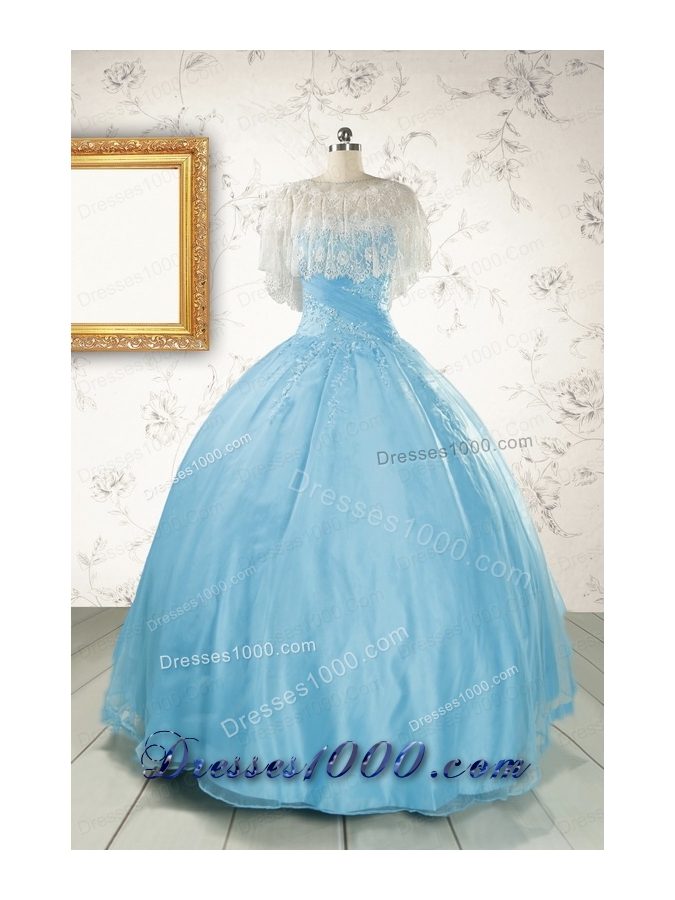 2015 Puffy Beading Baby Blue Quinceanera Dress with Wraps