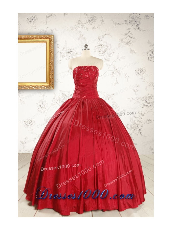 Cheap Red Strapless Sweet 16 Dresses with Beading