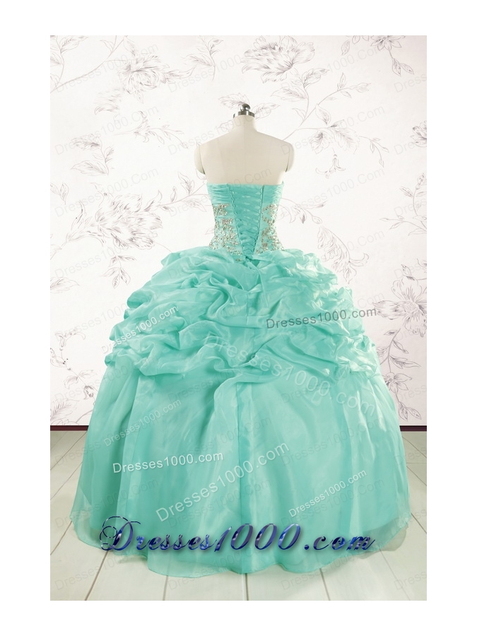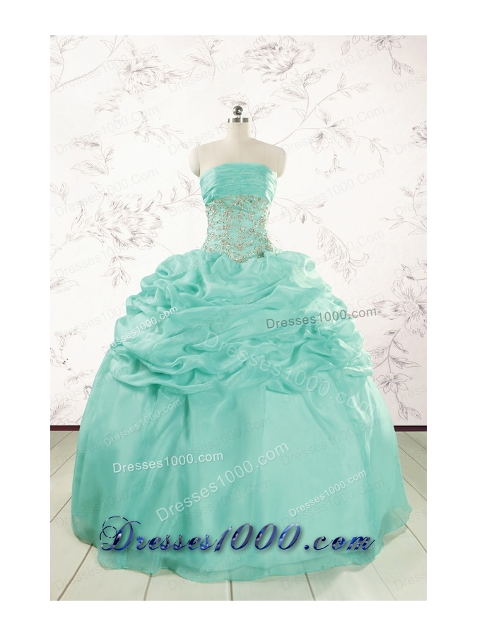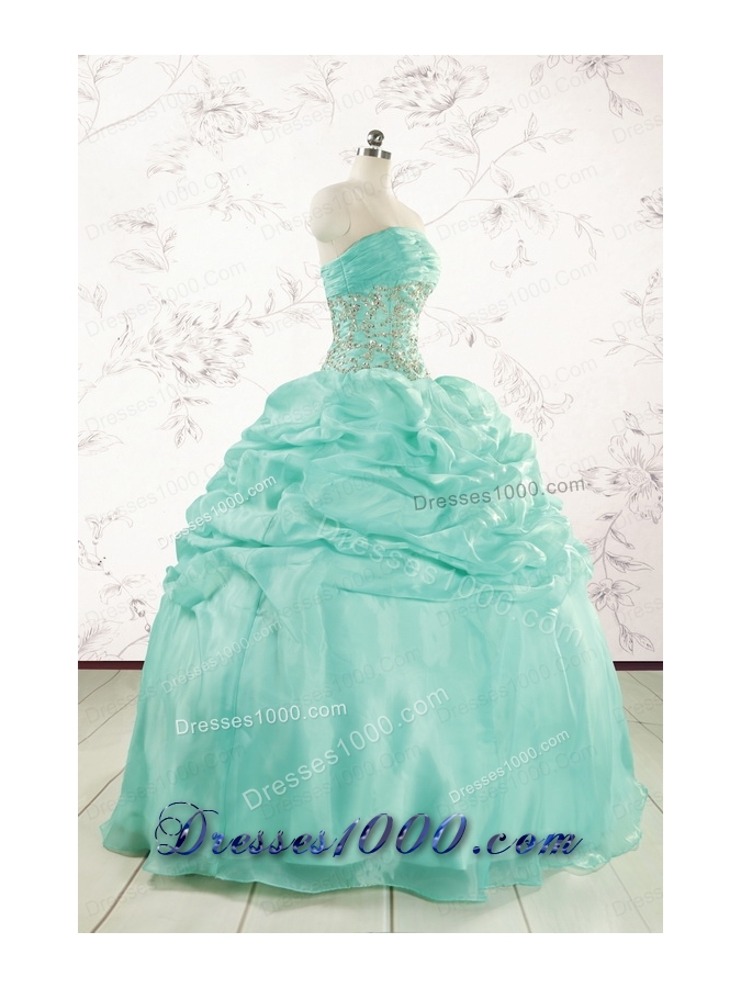 2015 Pretty Puffy Apple Green Sweet 16 Dresses with Beading