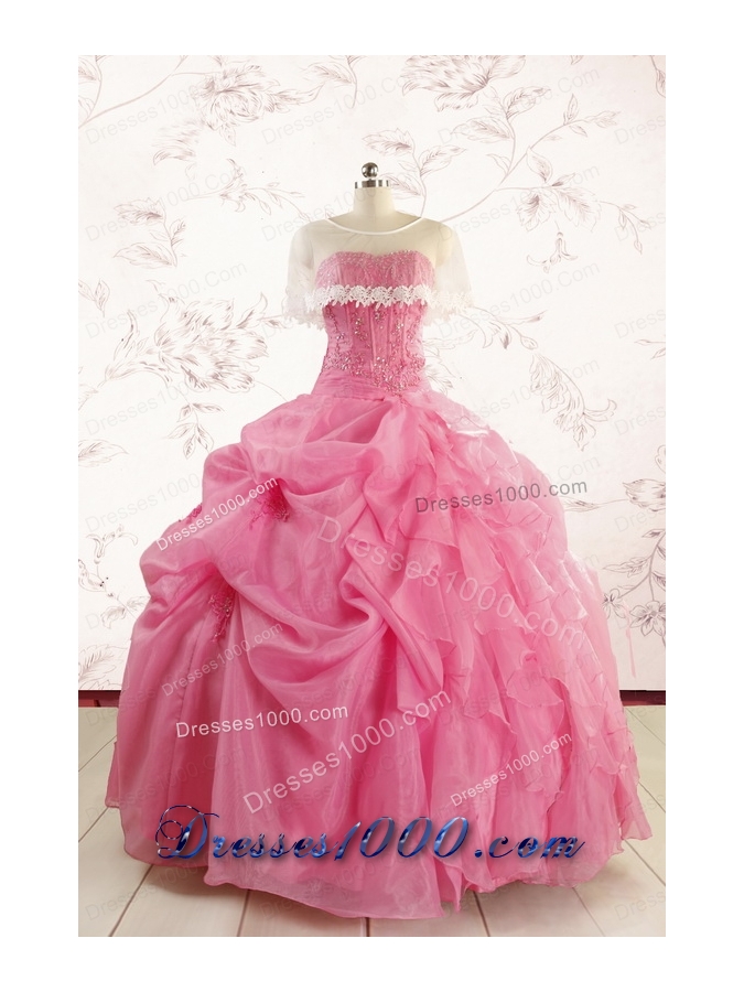 Perfect Rose Pink Quinceanera Gowns with Pick Ups for 2015