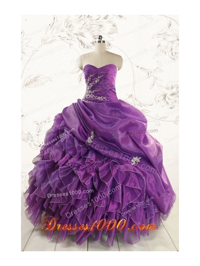 Romantic Purple Ball Gown 2015 Quinceanera Dress with Appliques and Ruffles