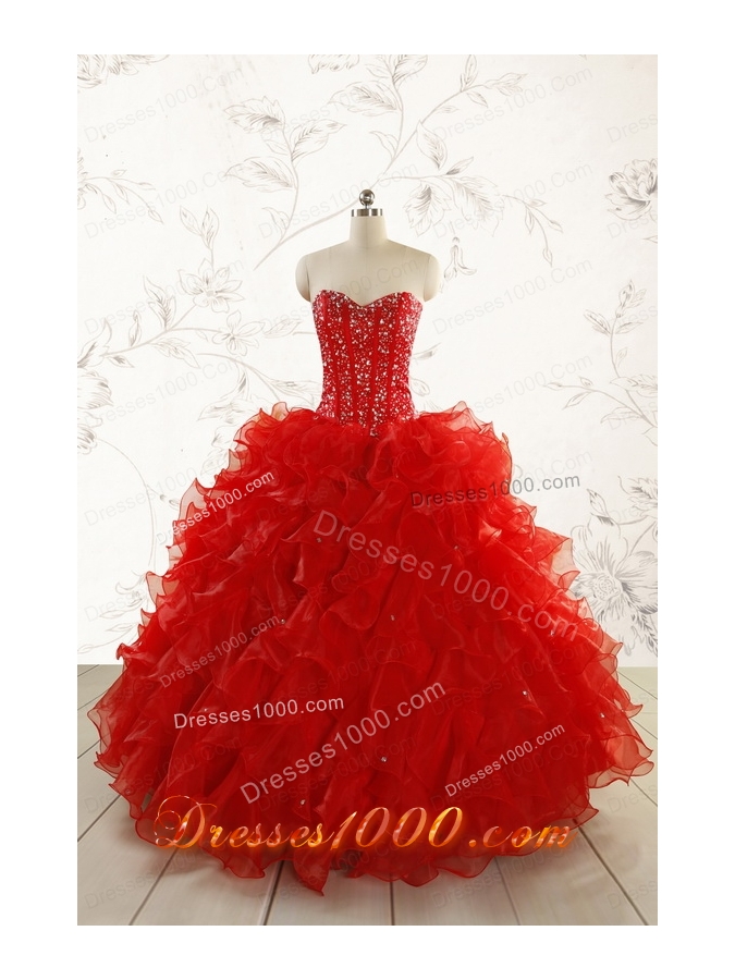 2015 Most Popular Red Quinceanera Dresses with Beading