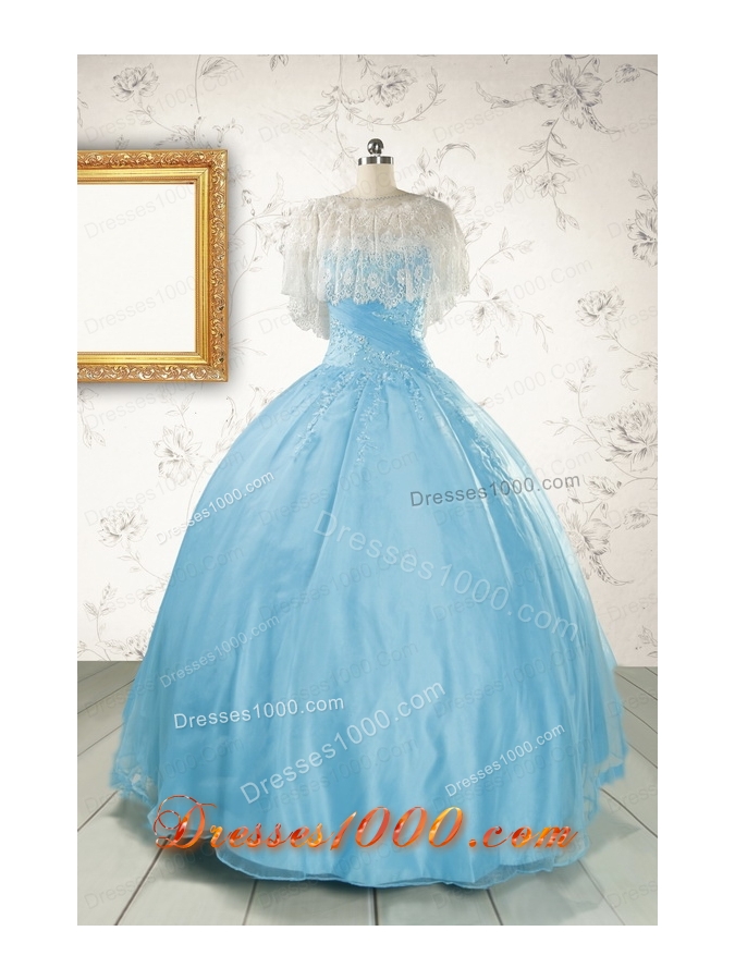 2015 Discount Strapless Beading Quinceanera Dress in Baby Blue