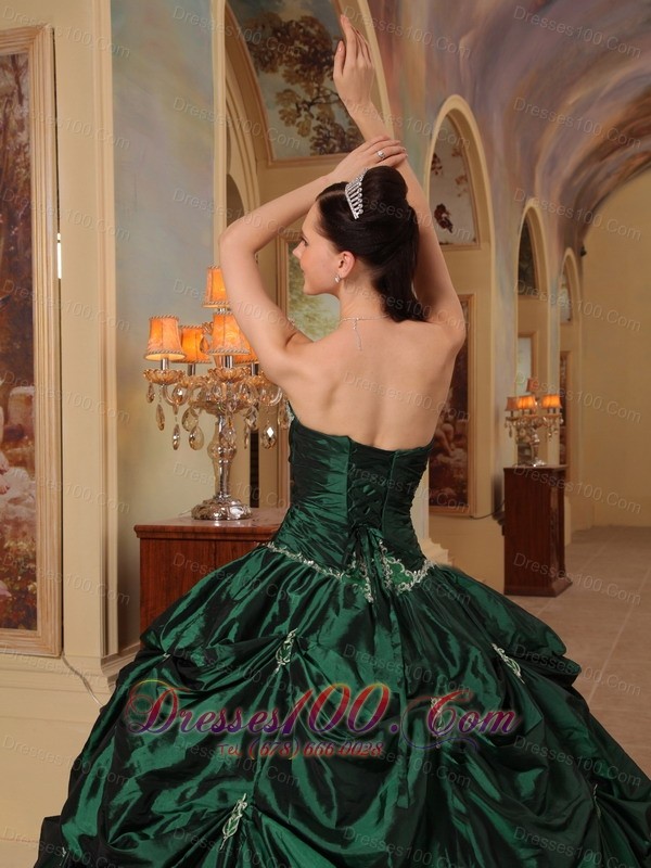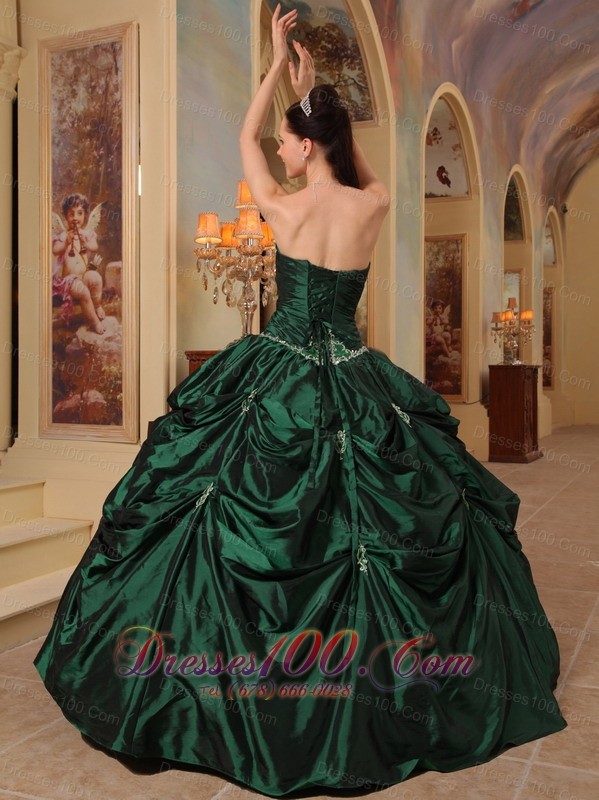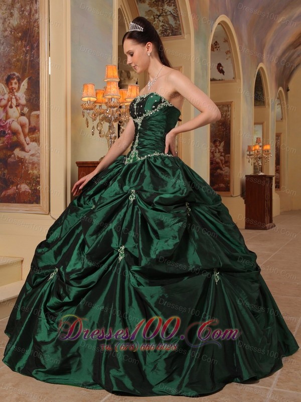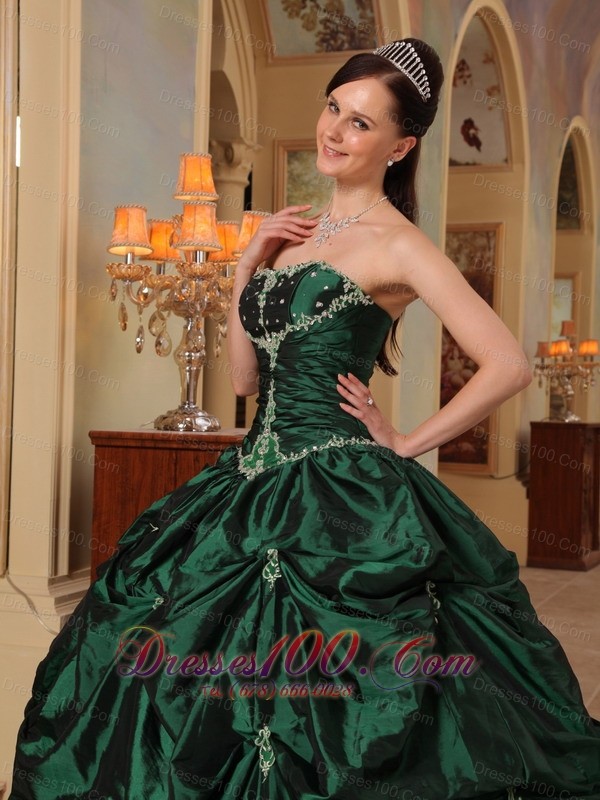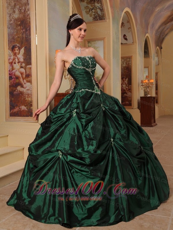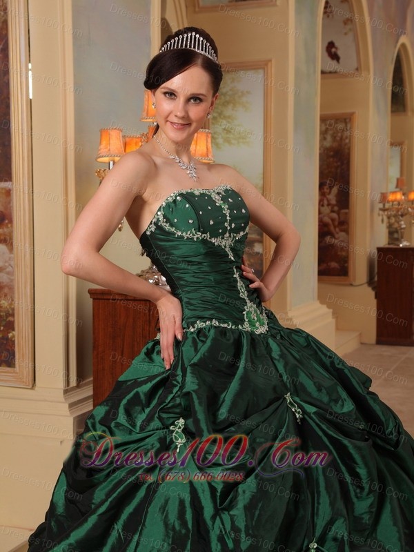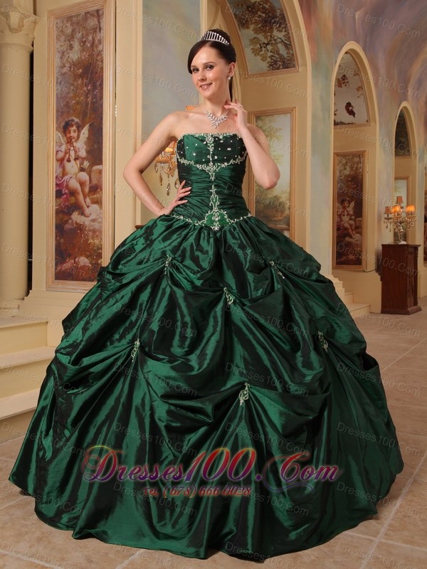 Dark Green Quinceanera Dress Strapless Beading Taffeta