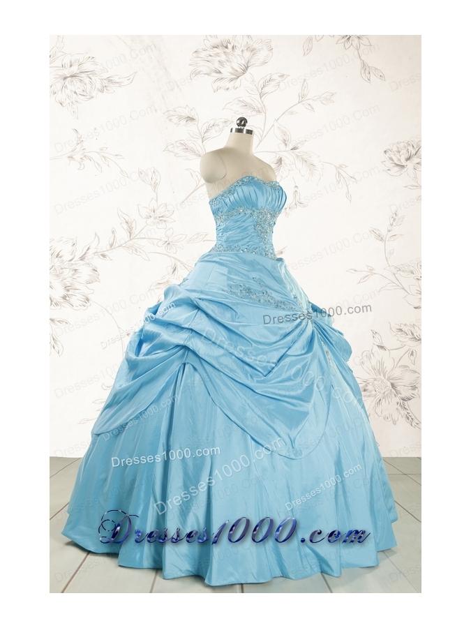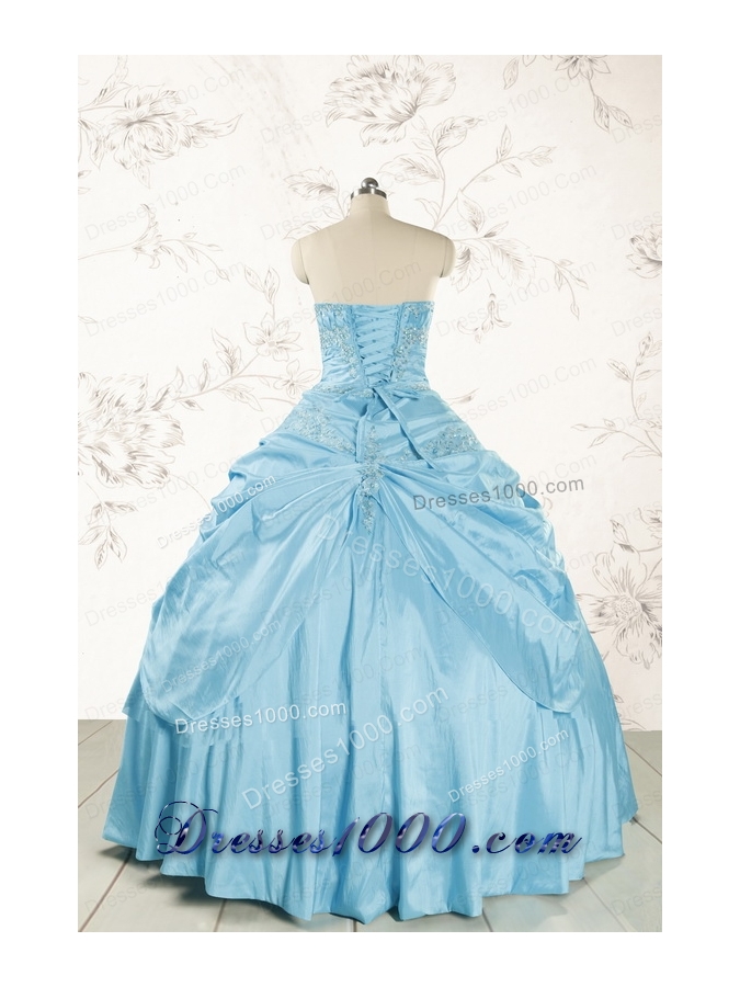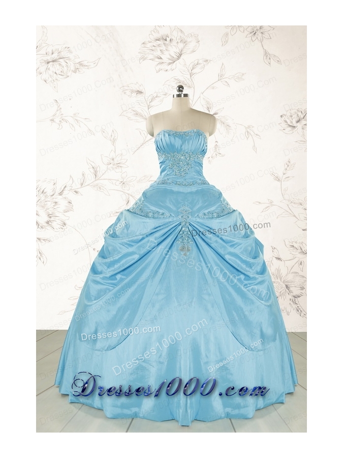 2015 Discount Strapless Appliques Sweet 15 Dress in Aqua Blue