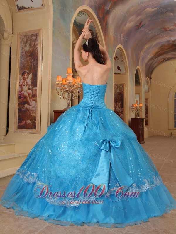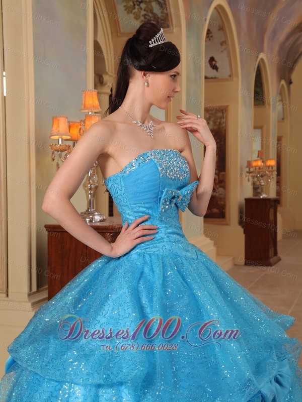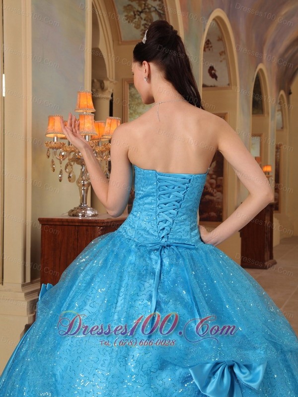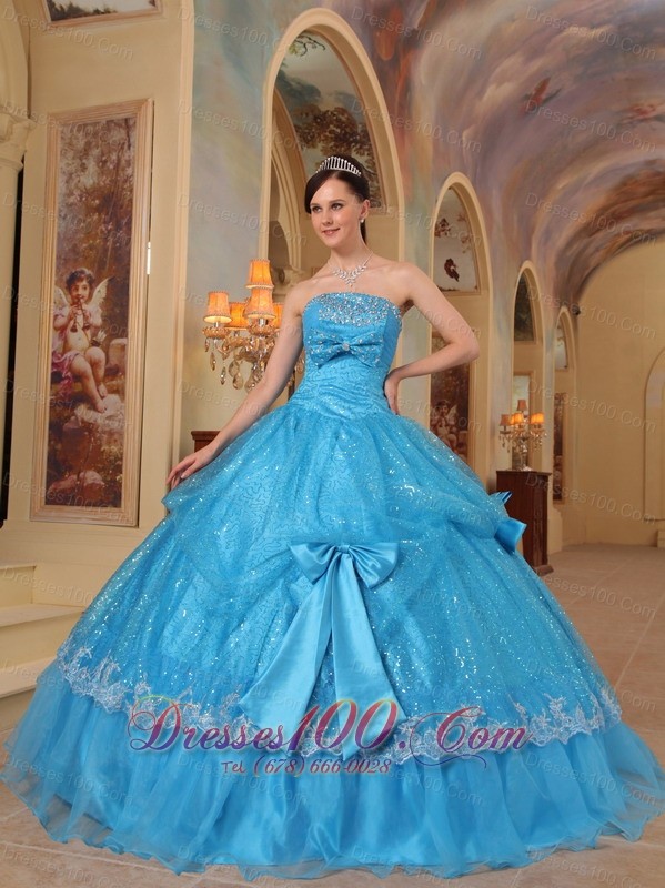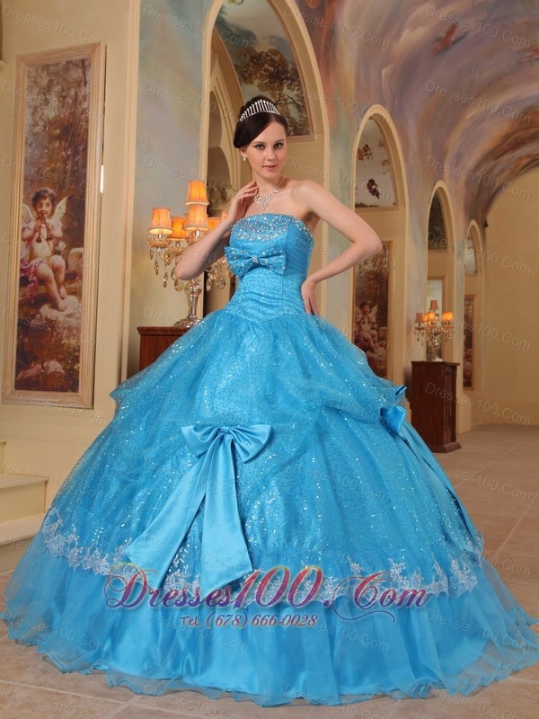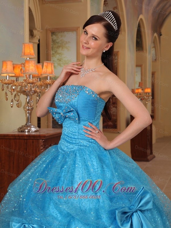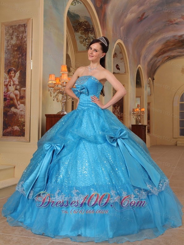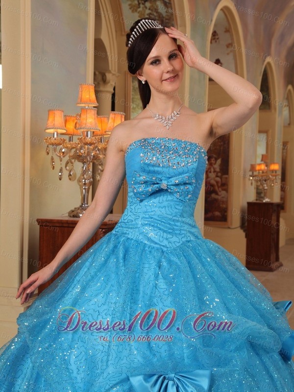 Baby Blue Quinceanera Dress Strapless Bows Sequins