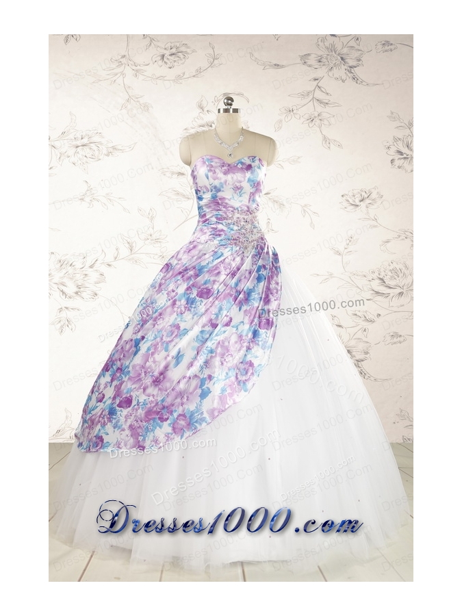 2015 Printed Multi-color Quinceanera Dresses with Beading and Ruching