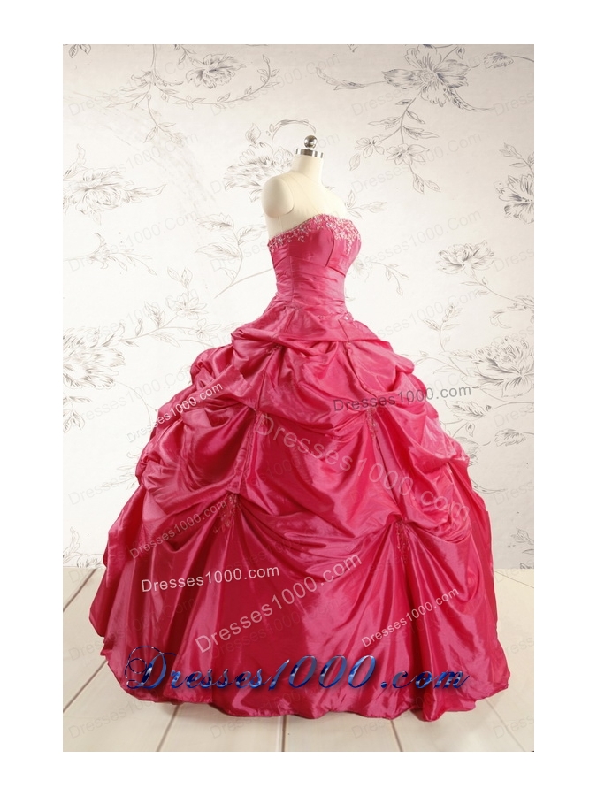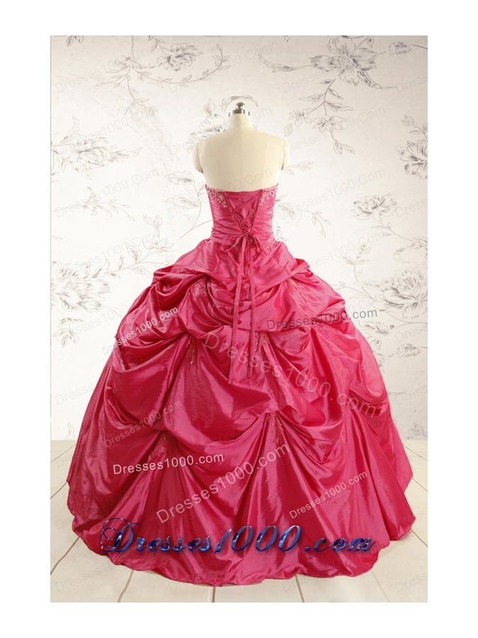 2015 Cheap Appliques Quinceanera Dresses in Hot Pink