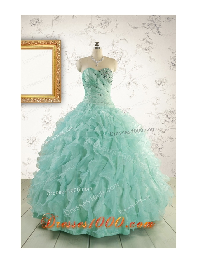 2015 Pretty Sweetheart Beading Quinceanera Dresses in Apple Green