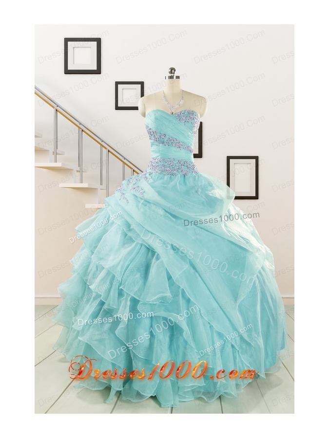 Beading and Ruffles Pretty Quinceanera Dresses in Aqua Blue for 2015
