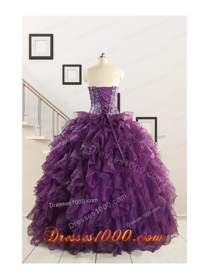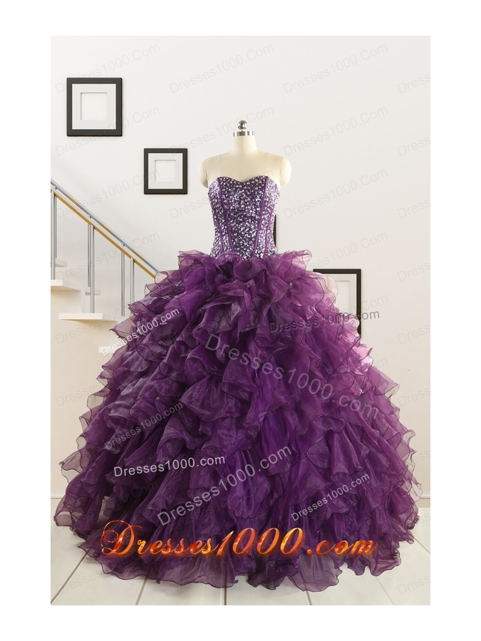 2015 Luxurious Beading and Ruffles Quinceanera Dresses in Purple