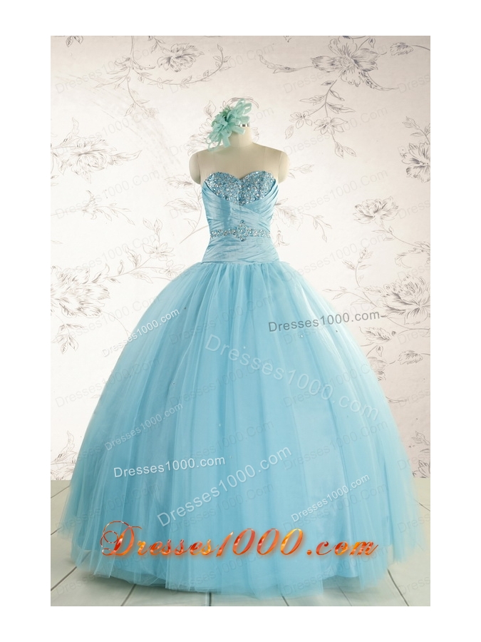 Elegant Beading 2015 Quinceanera Dress in Baby Blue