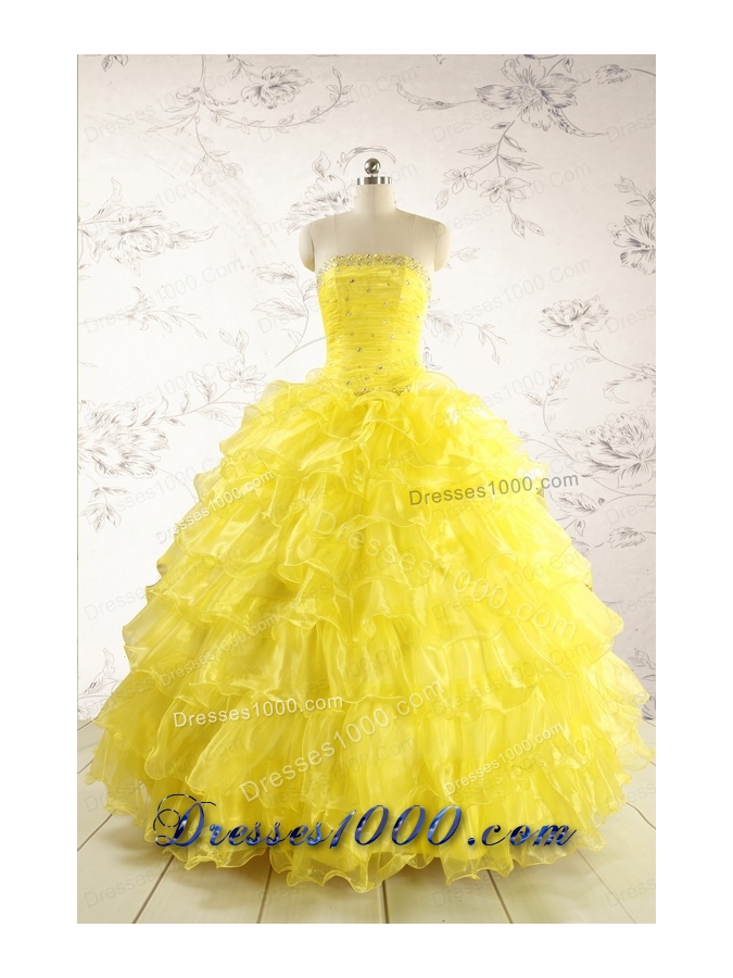 New Style Yellow Quinceanera Dresses with Beading and Ruffles
