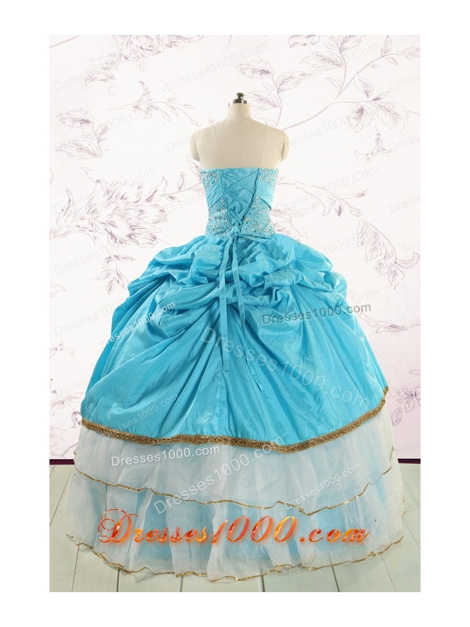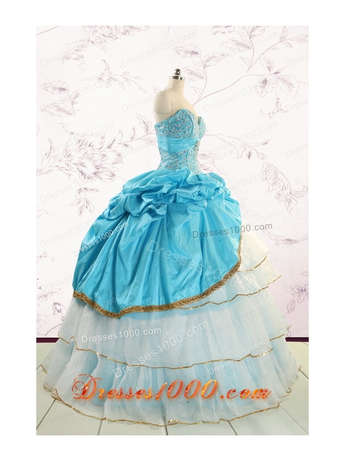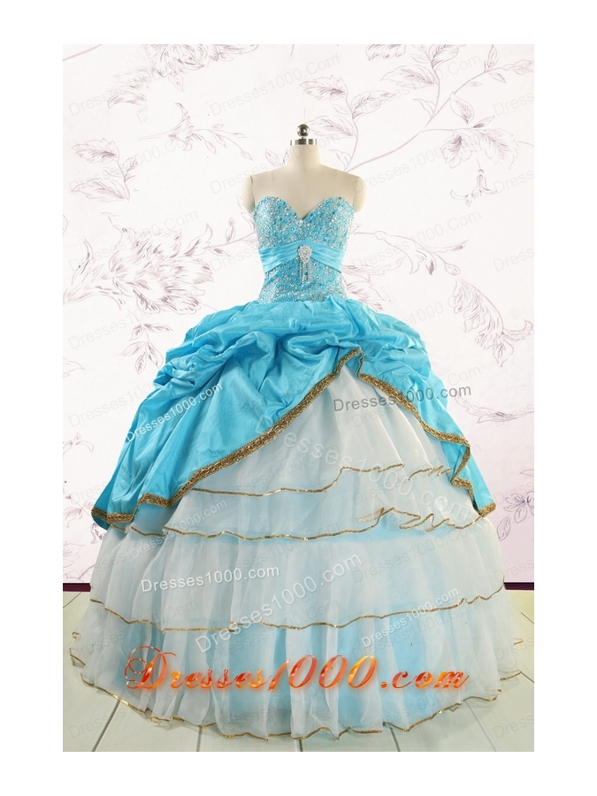 Custom Made Sweetheart Aqua Blue Quinceanea Dresses with Beading