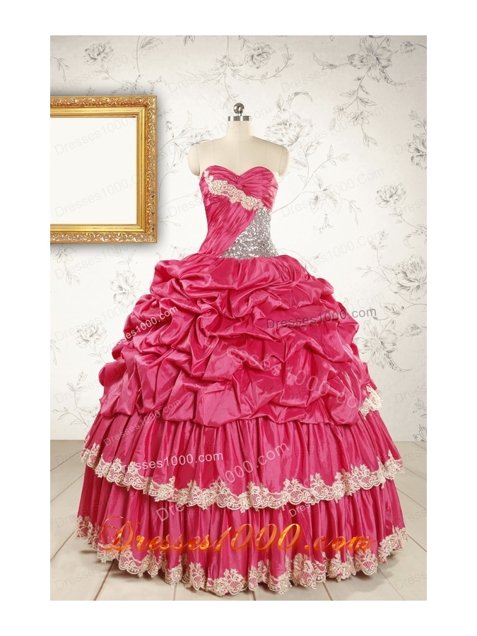 Cheap Appliques Sweet 15 Dresses in Coral Red