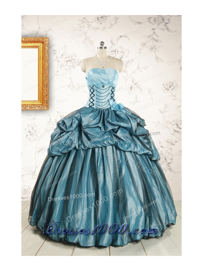 2015 Cheap Strapless Quinceanera Dresses in Teal