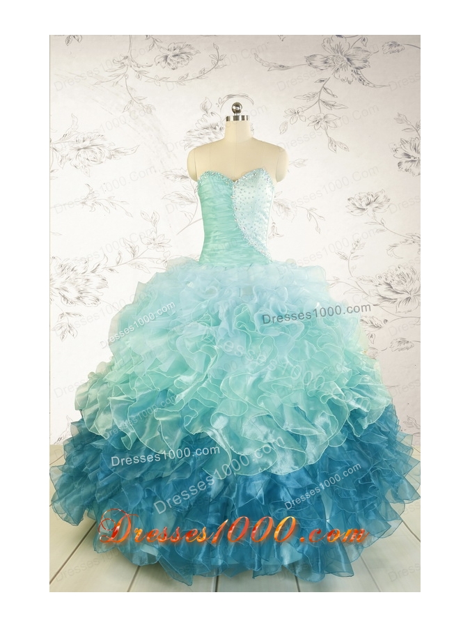 2015 Prefect Multi Color Quinceanera Dresses with Beading and Ruffles