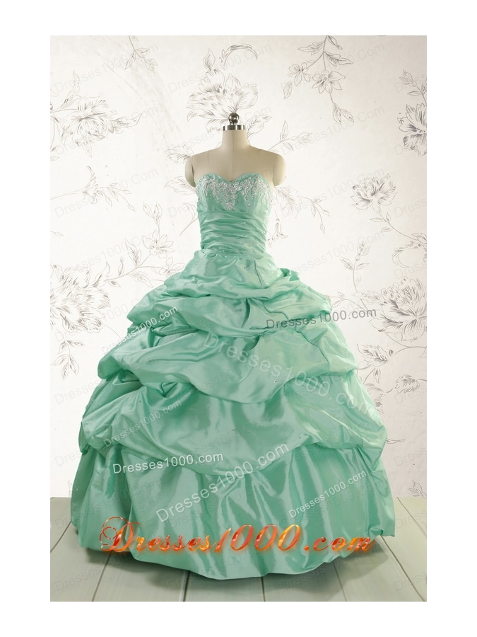2015 Luxurious Apple Green Quinceanera Dress with Beading and Pick Up