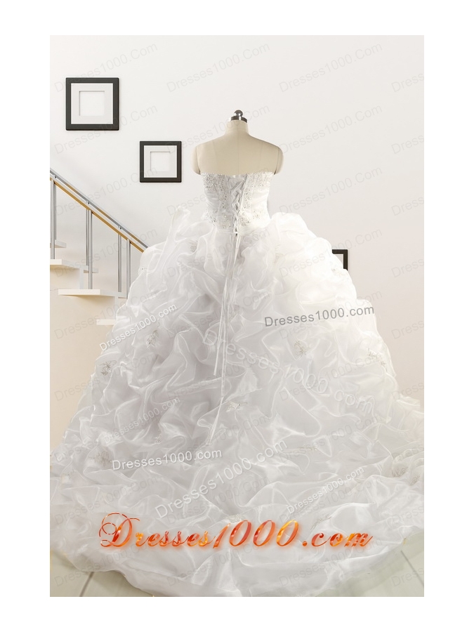 Exquisite Appliques White Brush Train Quinceanera Dresses for 2015