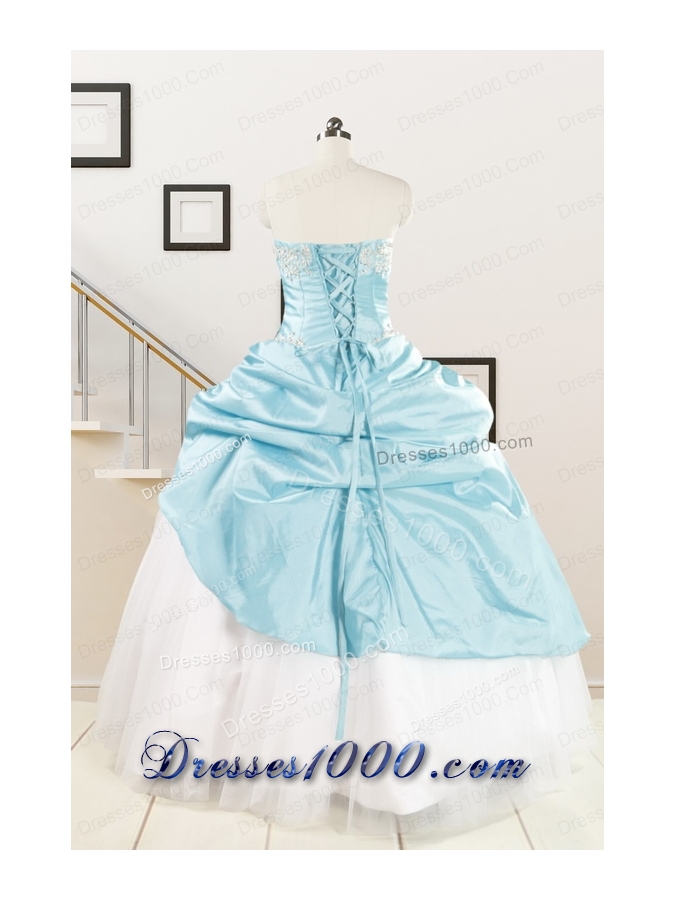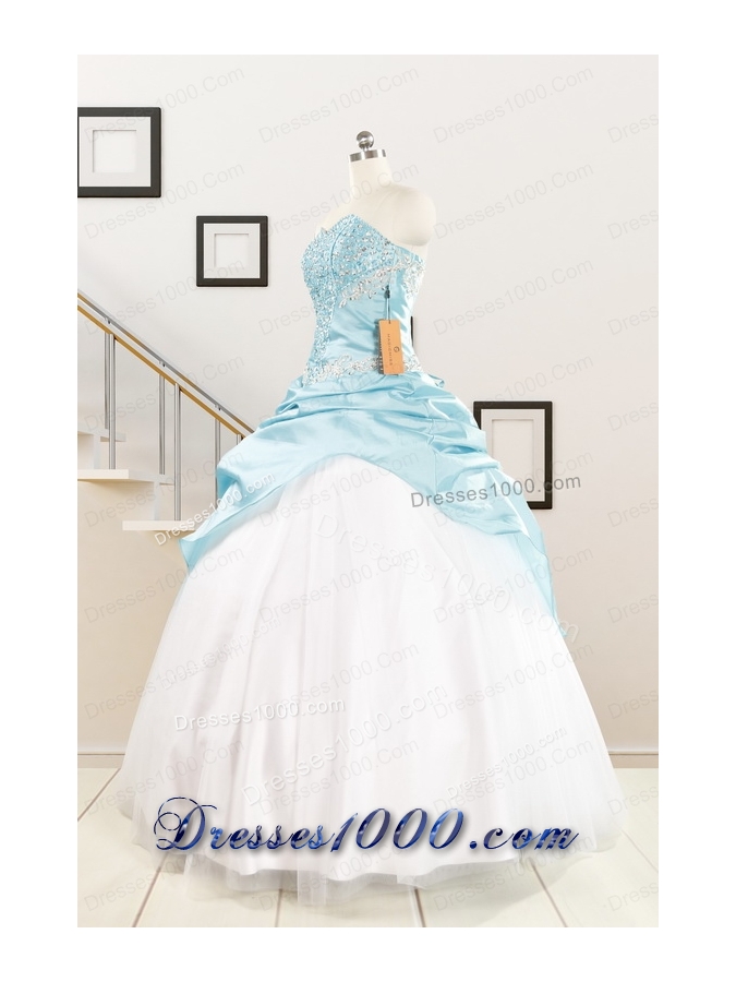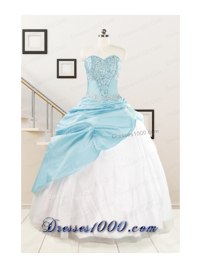 Pretty Beading Blue and White Quinceanera Dresses for 2015