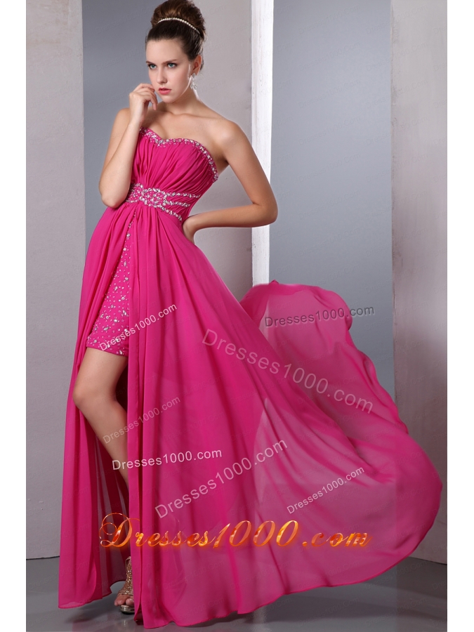 High style meets youthful sophistication with this unique strapless high low prom dress. This strapless dress for prom or formals features a sweetheart neckline with a pleated bodice. Dazzling jewels accent on the neckline and waist add the perfect touch of sparkle. The high-low hemline on this strapless prom dress let's you show off while a sheer long overlay creates a dramatic design that will have heads turning as soon as you arrive.
