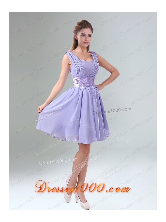 Perfect Straps Lavender Ruched Mini Length Prom Dress with Waistband