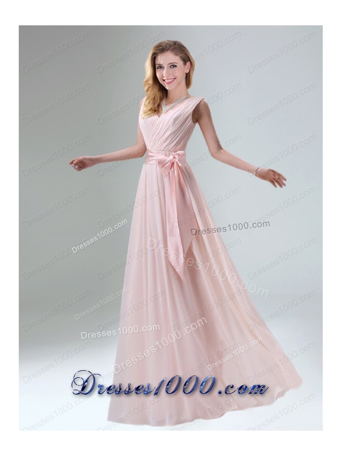 Fashionable Belt Ruching Chiffon Prom Dress with Bowknot