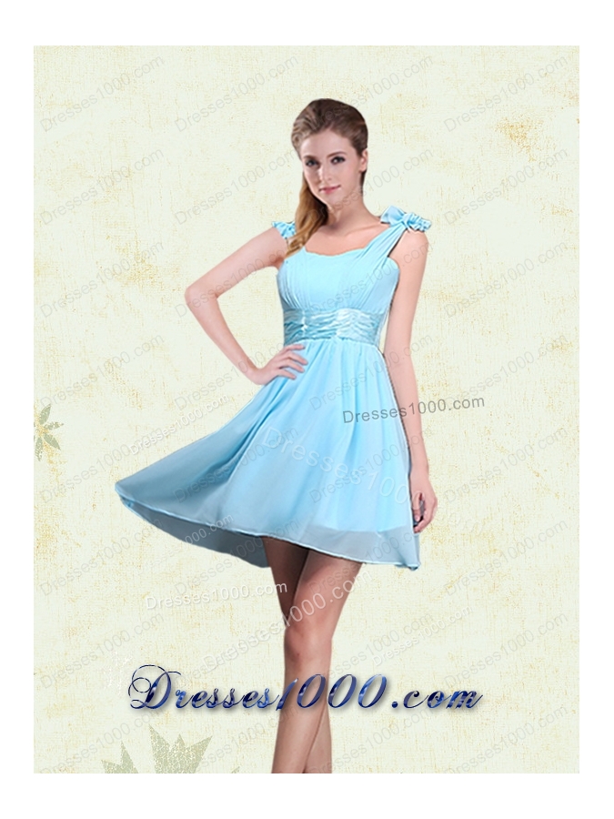 A Line Straps Prom Dresses with Ruching and Bowknot