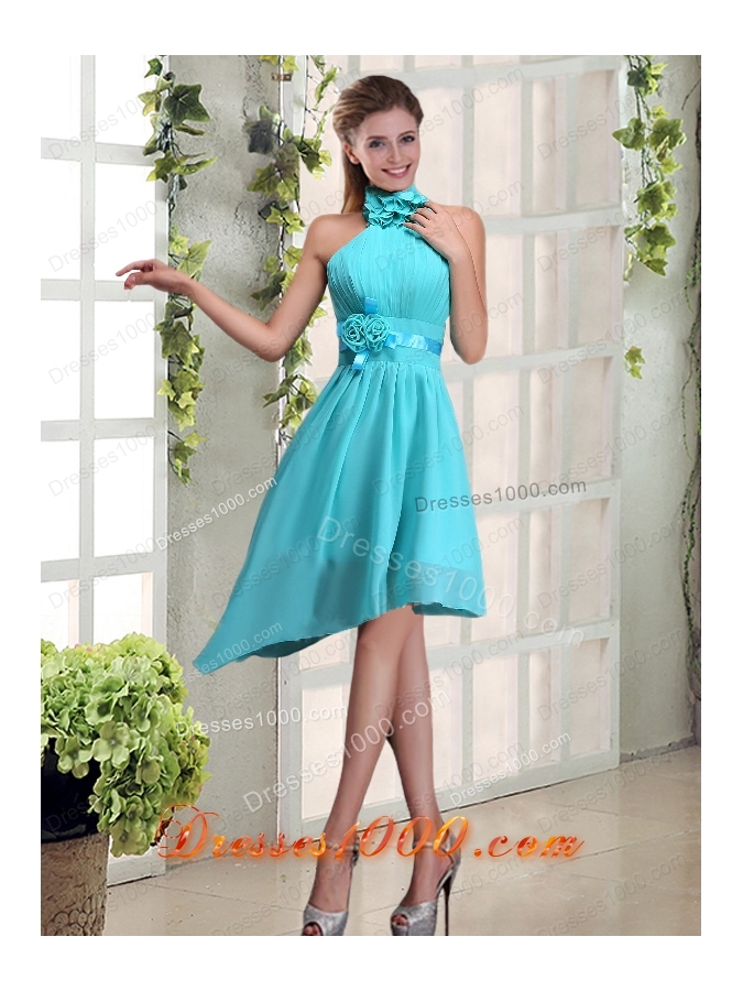 Halter Ruching and Hand Made Flowers Prom Dress