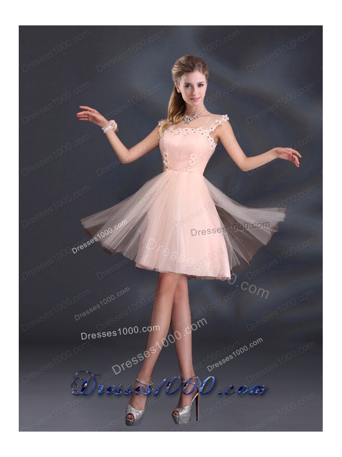 A Line Tulle 2015 Sturning Prom Dresses with Straps