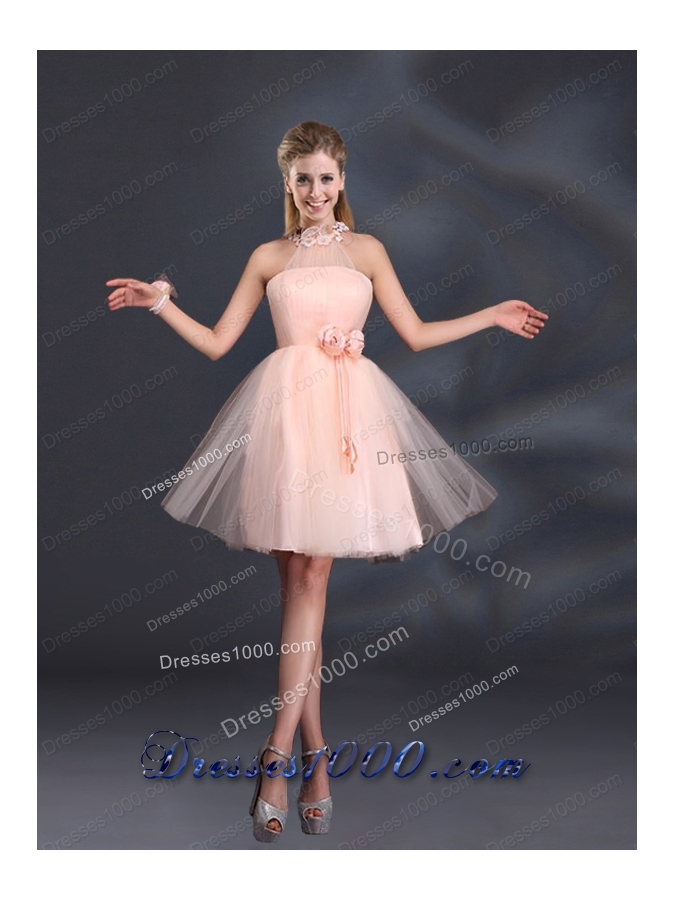Halter Hand Made Flowers Prom Dresses with Mini Length